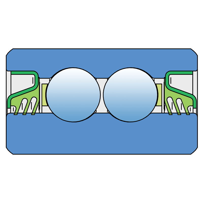 3-lip seal on the both side of the bearing, provides equal protection against contamination. Recommended for application where the possibility of contamination is the same on the both side.