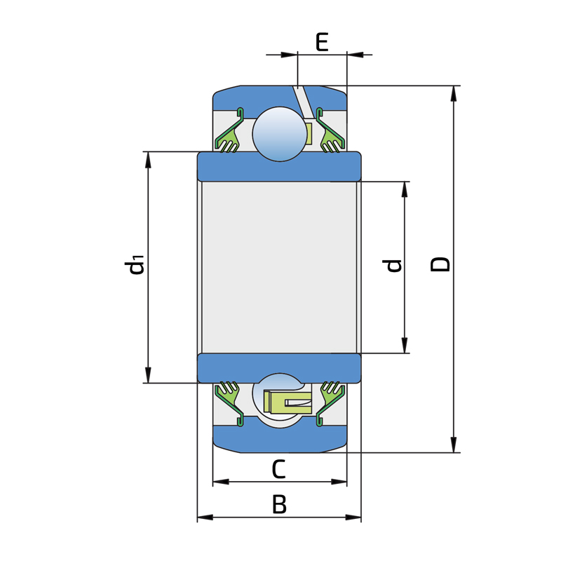 | E | Distance from raceway centre to the hole for lubrication | 15.6 | mm |