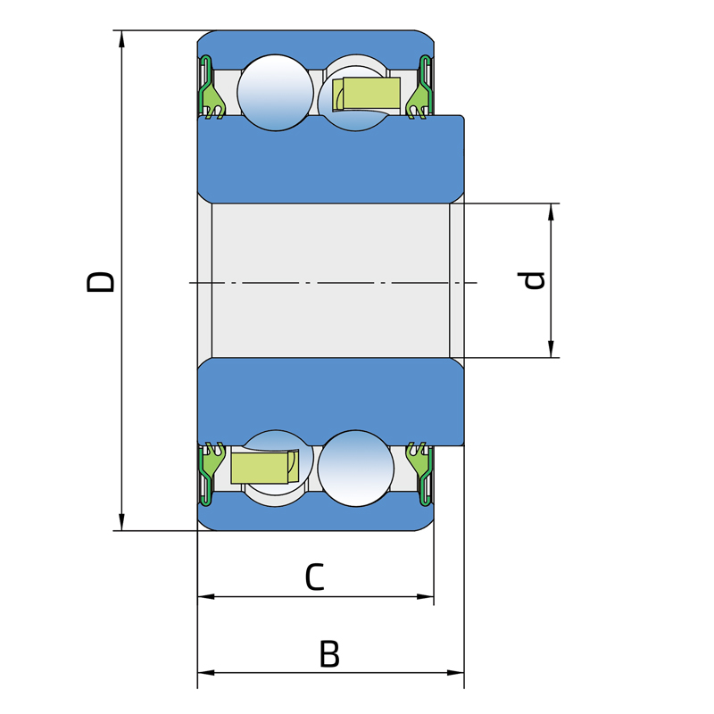 Dvousna zaptivka na obe strane ležaja pruža jednaku zaštitu od nečistoća. Preporučuje se za primenu u uslovima gde je mogućnost prodora nečistoće jednaka sa obe strane.