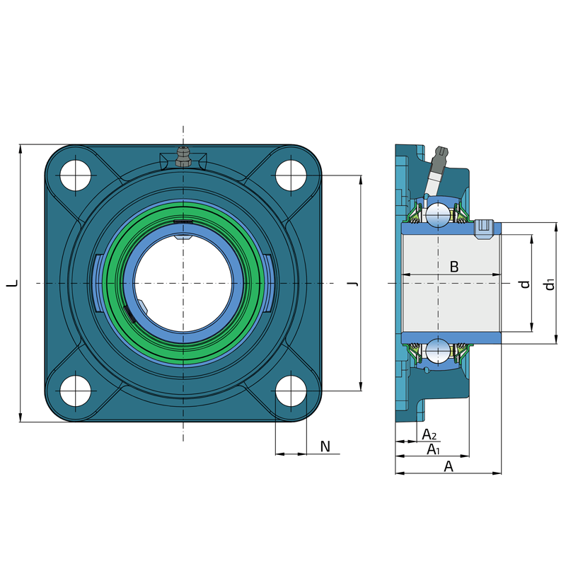 Y-ležajna jedinica – četvrtasto kućište od sivog liva tip „F“