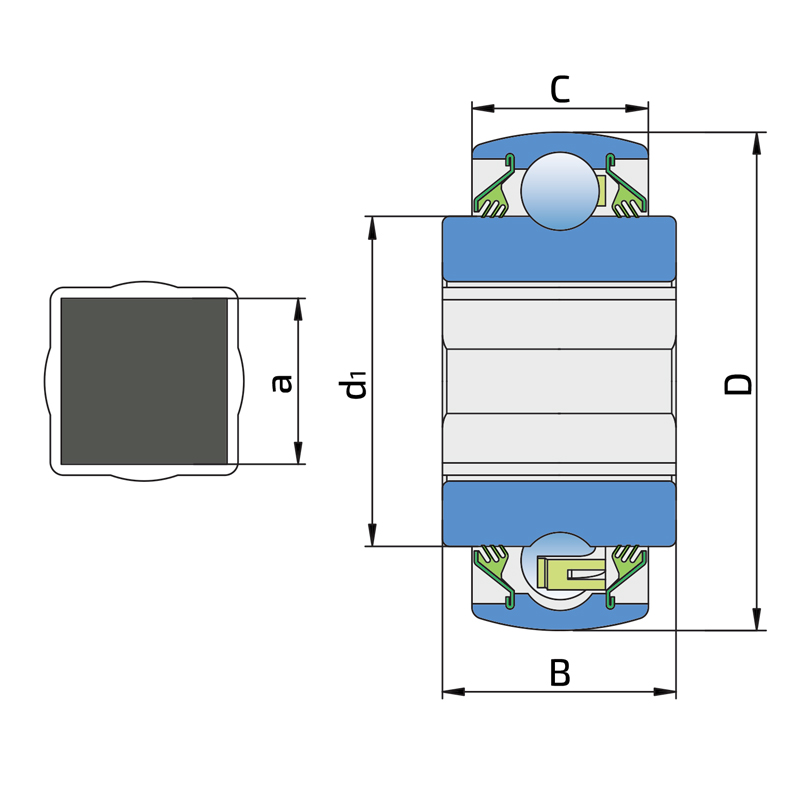 3-lip seal on the both side of the bearing, provides equal protection against contamination. Recommended for application where the possibility of contamination is the same on the both side.