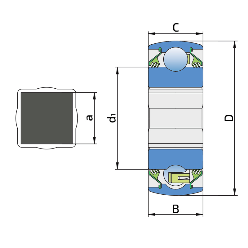 Square Bore Series With Spherical Outer Ring - Non-Relubricable Type