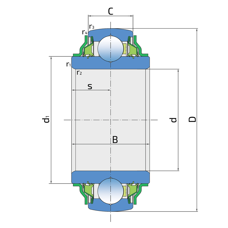 | s | Расстояние от боковой поверхности внутреннего кольца до центра дорожки качения | 19.2 | мм |